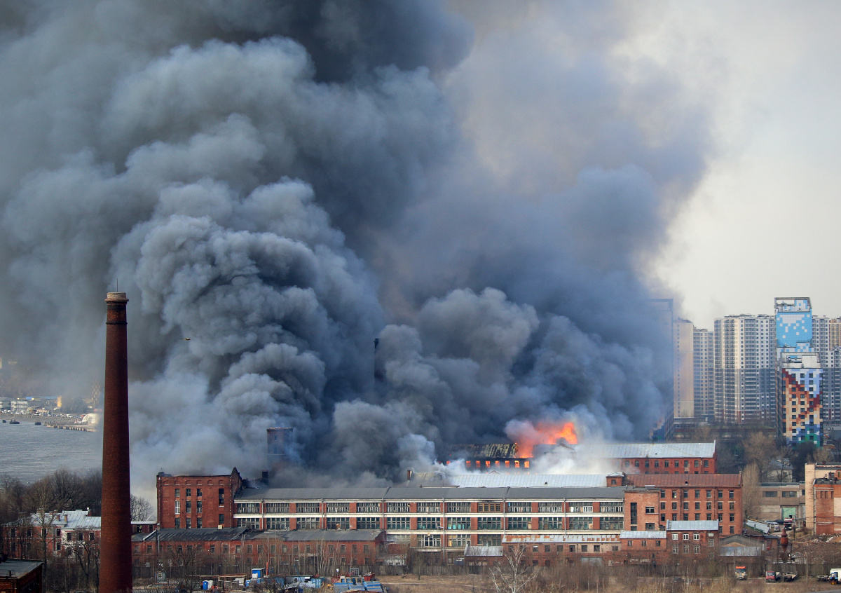 Пожар в здании «Невской мануфактуры» на Октябрьской набережной Петербурга вспыхнул 12 апреля в 12:35 мск. Тушение осложнено погодными условиями (в Северной столице дует сильный ветер) и тем, что здание старинное. На месте ЧП работает вертолёт.