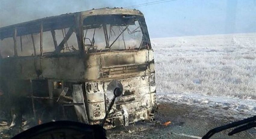 Трагедия на автотрассе Самара — Шыкмент произошла утром 18 января. Во время движения загорелся пассажирский автобус, перевозивший 55 пассажиров. В салоне также находились двое водителей. Пятерым пассажирам удалось спастись, а 52 человека сгорели заживо.