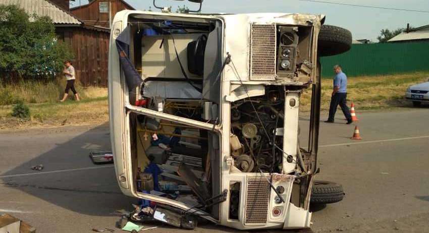 Уточняется, что он вылетел на легковушке на перекрёсток, хотя должен был уступить дорогу двум автобусам. Удар был такой силы, что один из автобусов опрокинулся.