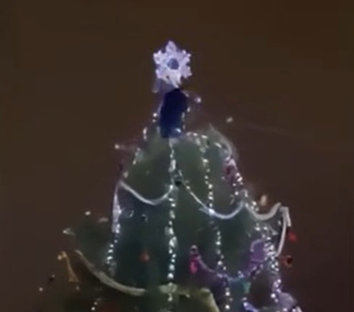 По словам очевидцев, вандал забрался на самый верх дерева довольно быстро. Он вцепил в звезду и начал раскачивать её. В какой-то момент мужчина не удержался и рухнул вниз с высоты около 10 метров.