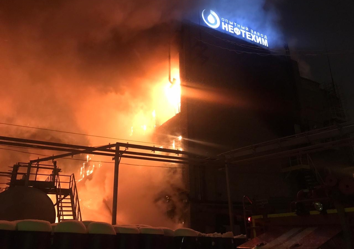 Ранее NEWS.ru писал. что ЧП произошло в трёхэтажном кирпичном производственном здании на территории завода «Нефтехим». Пожару был присвоен повышенный ранг сложности.