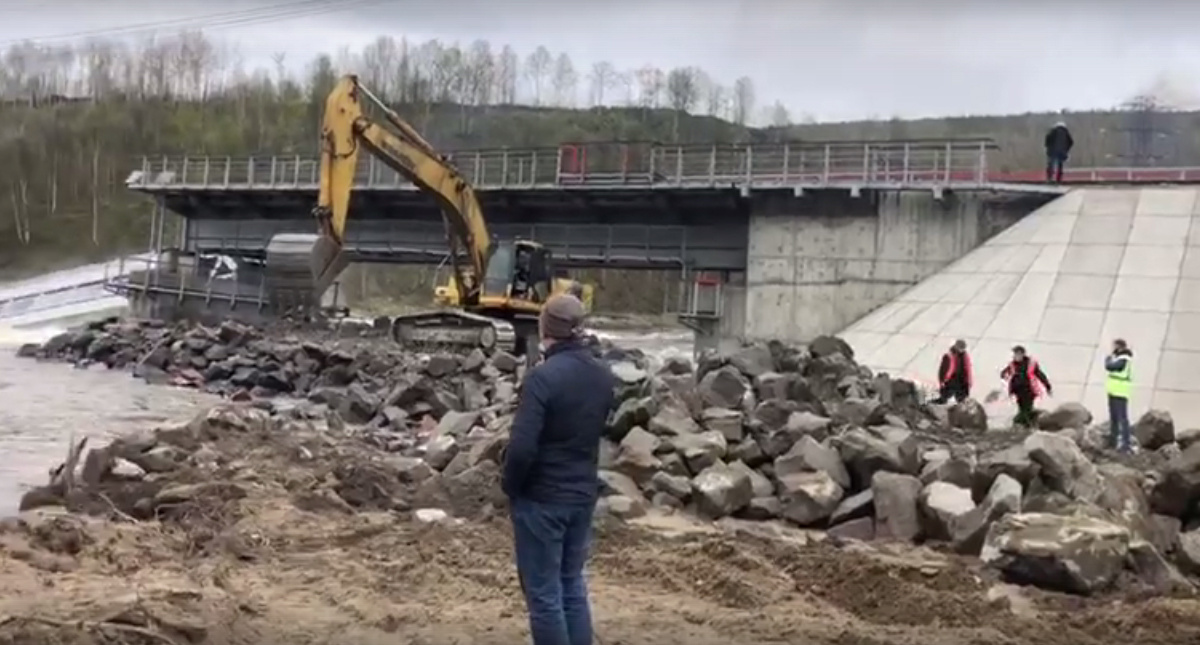Появилось видео спасения железнодорожного моста через Колу от обрушения