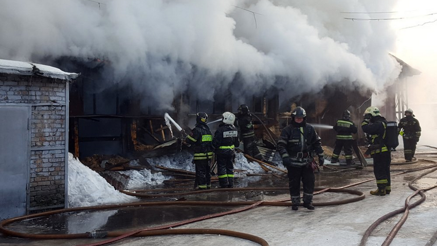 Склад пластика и бумаги, расположенный на Советской улице в Молзино, загорелся днём 24 января. Ранее сообщалось, что на место пожара выехали десять боевых расчётов.