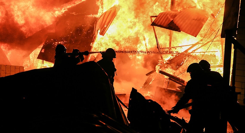 Известно, что огонь охватил площадь в 200 квадратных метров, существует угроза распространения пожара на вплотную пристроенное одноэтажное здание. Обстоятельства происшествия уточняются.