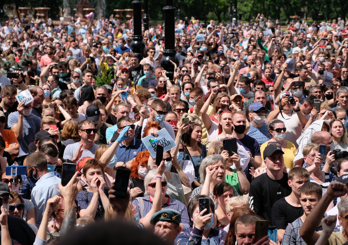 В Хабаровске 11 июля состоялась акция в поддержку арестованного по обвинению в организации убийств губернатора края Сергея Фургала. По предварительным сведениям, в митинге приняли участие от 5 до 35 тысяч человек.