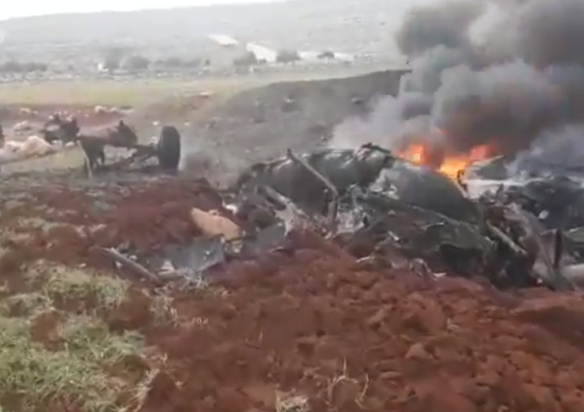 В Сети появились видео с места трагедии. Это второй за неделю вертолёт, сбитый террористами в САР. В прошлый раз летательный аппарат рухнул в провинции Идлиб.