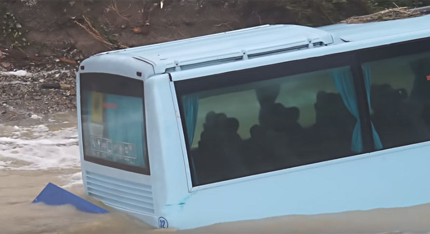 В селе Широкая Балка на окраине Новороссийска в море смыло пассажирский автобус. Его снесло с дороги селевым потоком, вызванным сильными ливнями.
