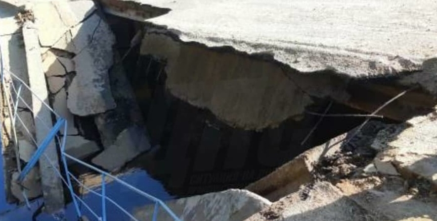 Гружённый скальным грунтом самосвал обрушил мост через реку Лазаревку.