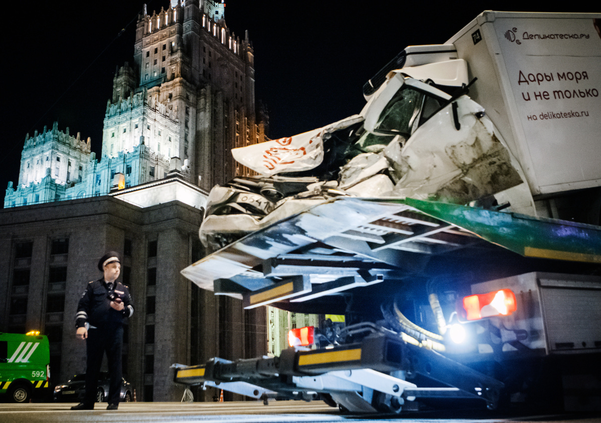 Вечером 8 июня у дома № 3 на Смоленской площади Ефремов за рулём Jeep Grand Cherokee выехал на полосу встречного движения и совершил столкновение с автомобилем ВАЗ.