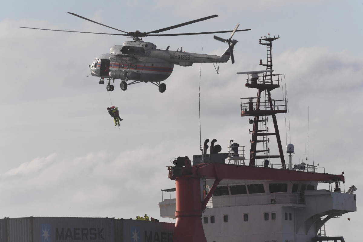 Специалисты МЧС России эвакуировали с помощью вертолёта Ми-8 первых девятерых членов экипажа с севшего на мель контейнеровоза Rise Shine. Об этом сообщил представитель Росморречфлота, передаёт ТАСС. Всего на борту находились 14 человек, их эвакуацию затрудняли сильные волны.