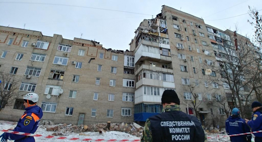Взрыв прогремел рано утром 14 января в доме 16 по улице Хабарова, разрушены четыре квартиры на 8-м и 9-м этажах.