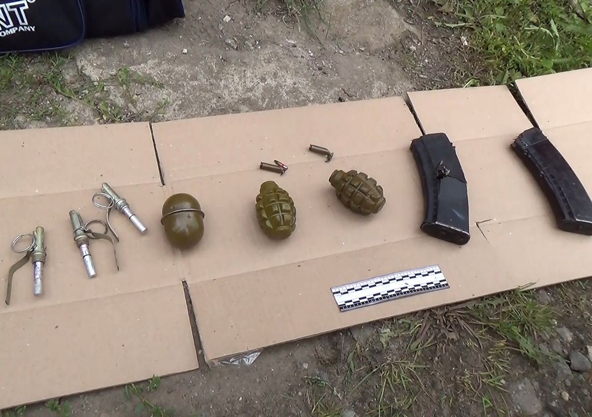 На месте происшествия были найдены автомат АК-74У, три снаряжённых магазина, две гранаты Ф-1 и одна граната РГД.