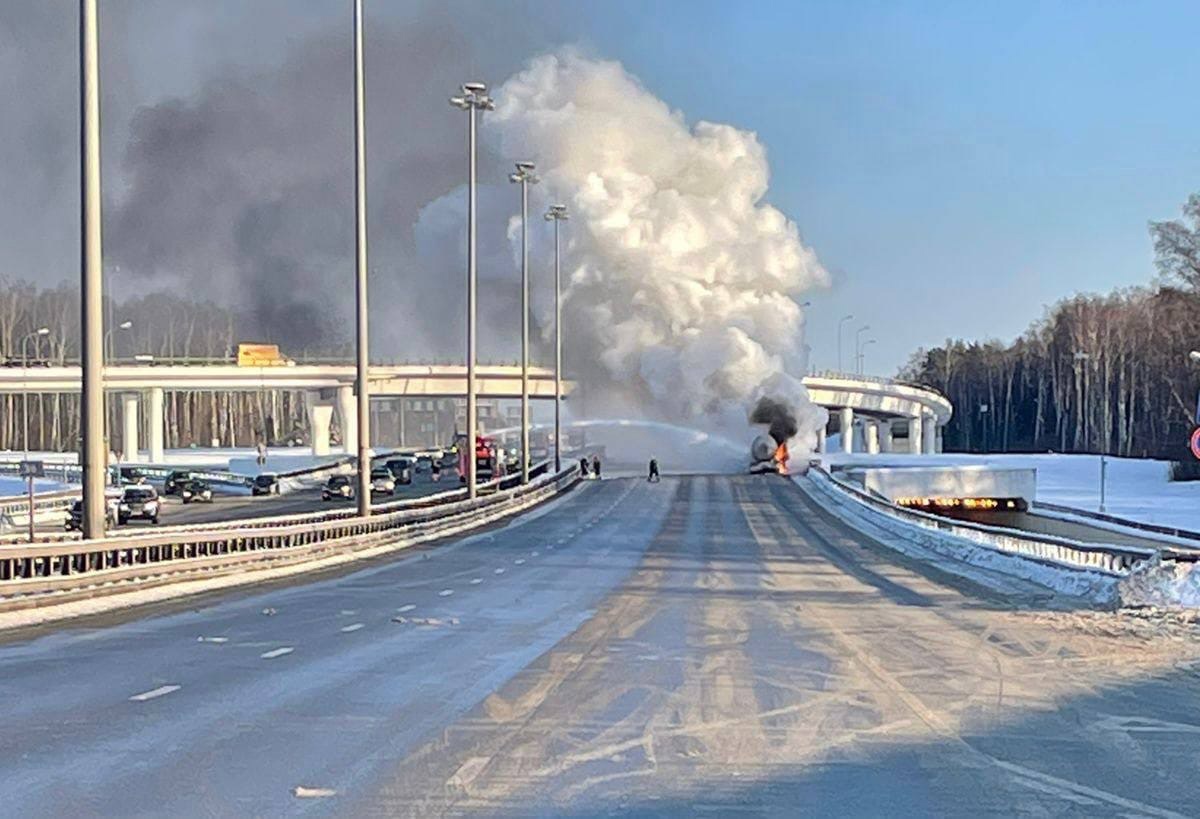 В Москве на Киевском шоссе загорелся бензовоз