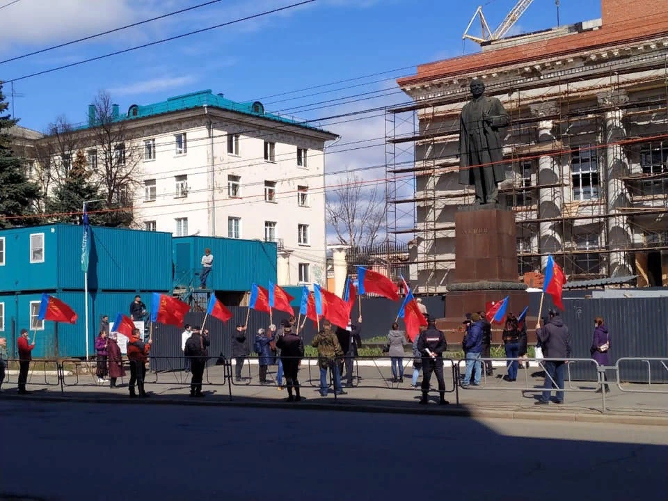 Шесть человек провели пикет у памятника Ленину в Ижевске, не уведомив заранее об этом городские власти. Он прошёл 1 мая.