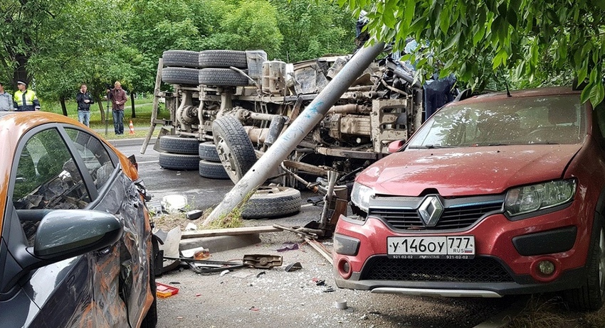 Уснувший водитель бетономешалки протаранил девять припаркованных автомобилей и снес столб в Москве. ДТП произошло на юго-востоке столицы на улице Полбина, в результате аварии никто не пострадал.