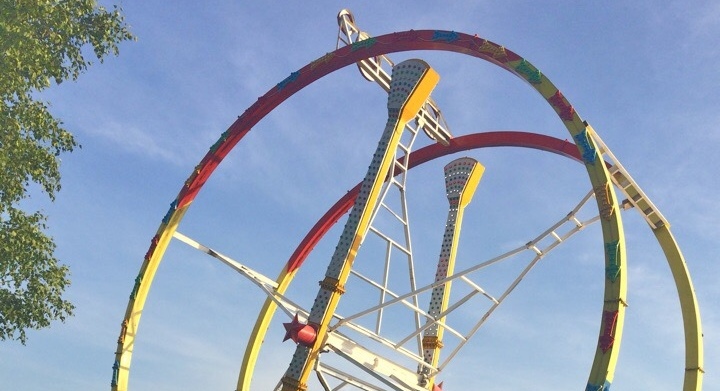 В Новосибирске отдыхающим пришлось повисеть вниз головой. Неожиданно остановился аттракцион «360 градусов».