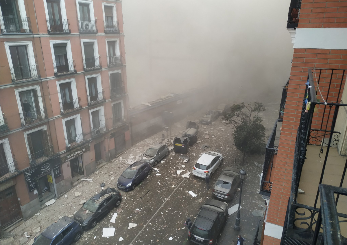 ЧП произошло на улице Толедо. Находившиеся в Мадриде люди говорят, что звук был слышен по всему городу. Взрыв затронул несколько домов. Один из них почти полностью разрушен.