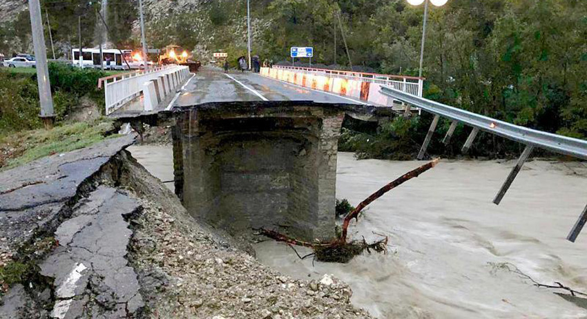 В Сочи вслед за Туапсинским и Апшеронским районами Краснодарского края введён режим ЧС из-за проливных дождей и подтоплений. В городе размыты дороги, затоплены дома и социальные учреждения. Прервано железнодорожное сообщение и автомобильное движение на федеральной трассе.