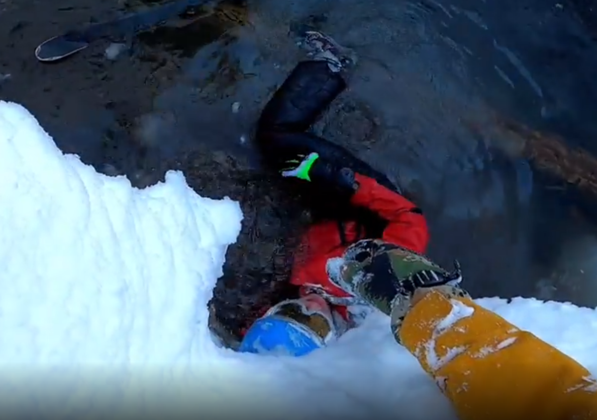 Лыжник-экстремал едва не погиб, катаясь на горной трассе в Сочи. Мужчина улетел в восьмиметровую яму, в которой протекал ручей с ледяной водой.