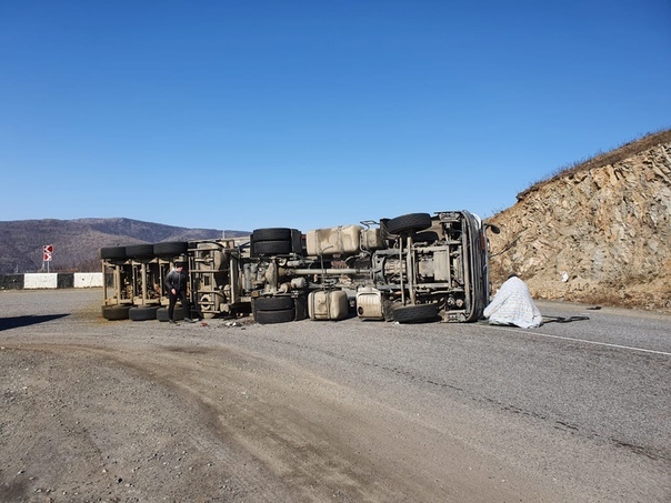 Известно, что пострадавших в ДТП нет. Движение транспорта перекрыто. На месте работают представители МЧС, ГИБДД и подрядной дорожной организации.