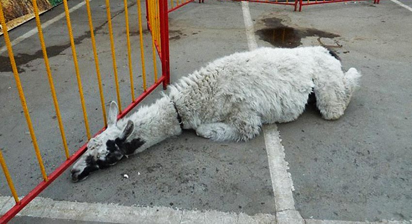 Зоозащитники сняли все факты на видео и выложили в YouTube. При входе в «Ноев Ковчег» посетители наткнулись на бессознательных жеребёнка и верблюда, лежащих на невыносимой жаре. Остальные животные содержатся в клетках. Но кому из них хуже — большой вопрос.