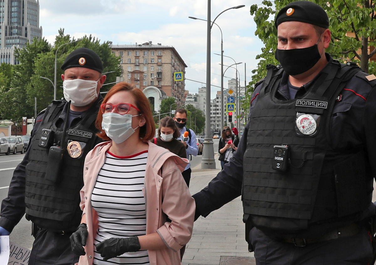 Как рассказал агентству главред «Медиазоны», его задержали за несколько секунд пикета, заявив, что «нельзя проводить уличные мероприятия». Сергей Смирнов сообщил также, что в автозаке, помимо него и Фельгенгауэр, увезли ещё и журналиста Александра Плющева. В настоящее время журналисты находятся в ОВД.