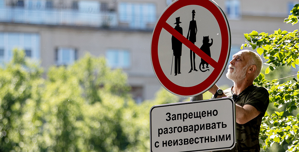 Неизвестные злоумышленники похитили знаменитый дорожный знак на Патриарших прудах в Москве. Речь идёт о табличке «Запрещено разговаривать с неизвестными», над которой установлены изображения героев романа Михаила Булгакова «Мастер и Маргарита» — Воланда, Коровьева и Кота Бегемота.