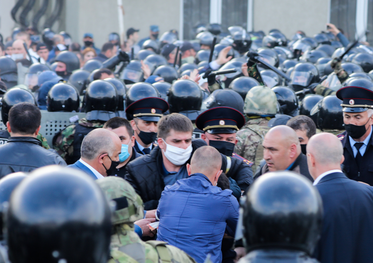 Люди вышли на площадь. Там было три кольца оцепления из полицейских и гвардейцев. И люди, 2 тысячи человек, прошли сквозь кордоны к зданию правительства и главреспублики. И надо сказать, митинг состоялся: к людям вышли чиновники и сам глава, и общение состоялось. Была выдвинута инициативная группа митингующих для дальнейших переговоров. И когда митинг заканчивался, люди разошлись, часть осталась на площади. Их полиция стала вытеснять и выдёргивать для задержания некоторых из толпы. И люди начали кидать камни в полицейских. Там как раз на площади меняли плитку, и там лежали и она, и старые куски асфальта. И они использовали её как оружие. К счастью, из полицейских никто не пострадал.