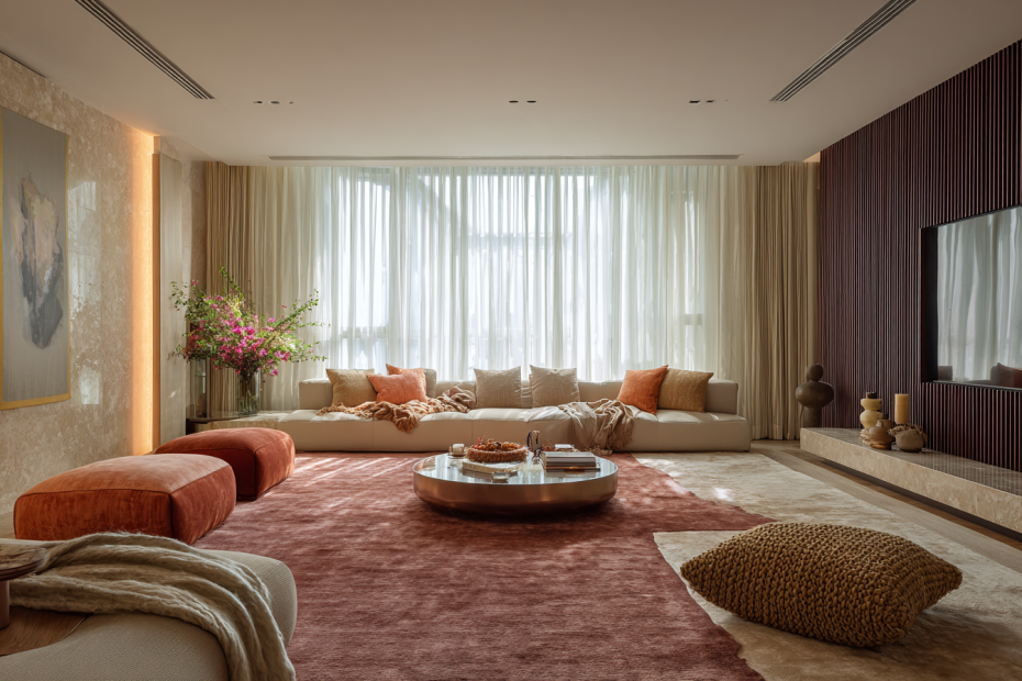 Интерьеры, которые выглядят дорого, объединяет одно качество — отсутствие резких линий. Все кажется обволакивающим: свет скользит по поверхности, тени мягко рассеиваются, а ткань соединяет мебель и стены в единую композицию.
