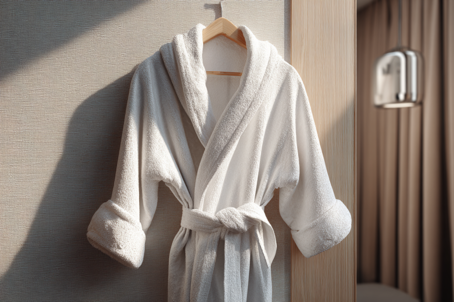 В отельной ванной халат никогда не рассматривается просто как домашняя одежда. Это продолжение архитектуры комфорта. Он должен быть объемным, длинным и обязательно выполненным из высококачественной махры или инновационного микрокоттона. Правильный халат выполняет роль температурного демпфера: он позволяет телу остывать постепенно, предотвращая резкий перепад температур между горячим душем и воздухом комнаты.
