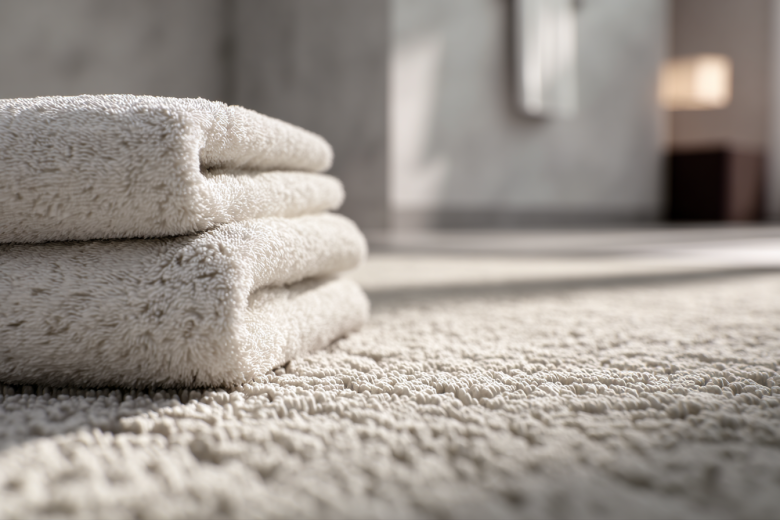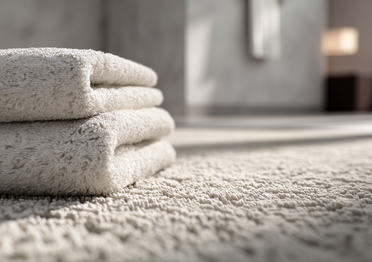 Отельный люкс всегда кроется в деталях, которые кажутся второстепенными, пока вы с ними не столкнетесь. Одна из таких деталей — напольный коврик. Он не должен быть резиновым или синтетическим. В идеальной отельной ванной это плотное хлопковое полотно, которое на ощупь напоминает очень толстое полотенце. Его задача — не просто впитать воду, а подарить вашим стопам ощущение мягкости и тепла в тот самый момент, когда вы делаете первый шаг из ванны.