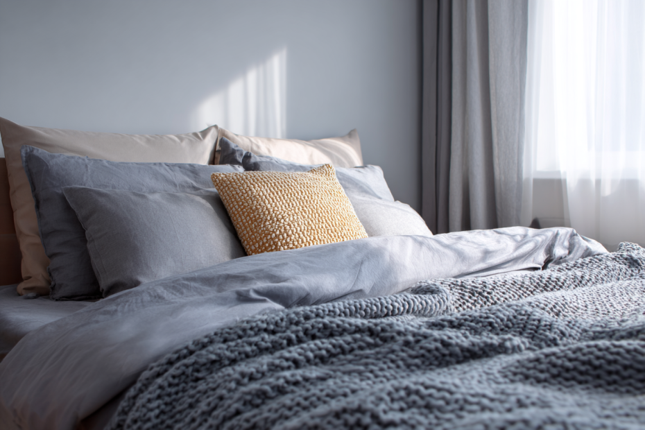 Холодные оттенки — серо-голубые, дымчатые, оттенки шалфея — помогают снизить уровень внутреннего напряжения. Они ассоциируются с воздухом, тишиной, прохладой и хорошо подходят тем, кто тяжело засыпает из-за тревожных мыслей. Важно, чтобы такие цвета сочетались с мягкой фактурой ткани: тогда визуальная прохлада уравновешивается тактильным комфортом. Этот баланс «холодного цвета и теплого прикосновения» считается одним из самых удачных решений для спальни.