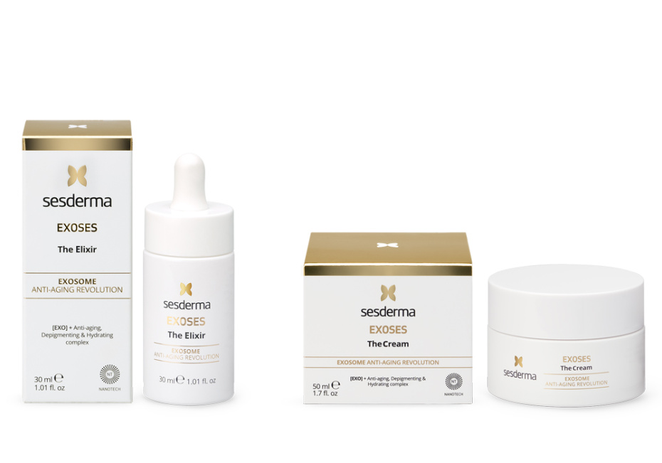 Крем и сыворотка из линейки Exoses Sesderma с экзосомами, лактобактериями, HP-ретиноатом, витамином С, ниацинамидом повышают эластичность кожи, разглаживают морщины. Компоненты улучшают тон лица: помогают в борьбе с пигментацией, выравнивают рельеф кожи.