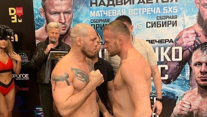 В соглавном бою вечера в среднем весе ученик Шлеменко Вячеслав Бабкин победил техническим нокаутом во втором раунде местного бойца Геннадия Ковалёва.