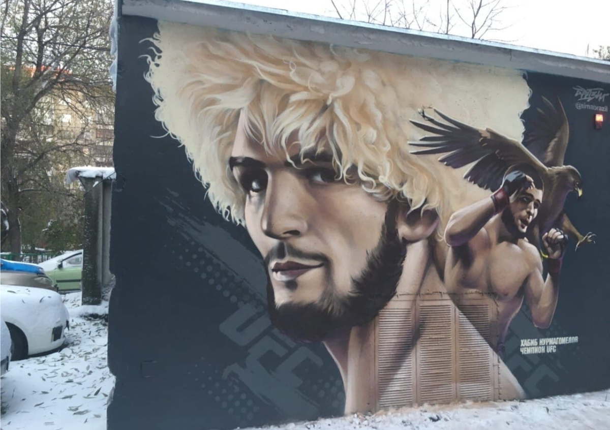Автором рисунка был южноуральский художник Тимур Бразил, нарисовавший граффити в честь победы Нурмагомедова над Джастином Гейтжи. На рисунке теперь написано чёрной краской: «Не наш герой».