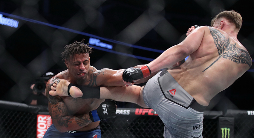 В соглавном бою вечера турнира Ultimate Fighting Championship в Москве российский тяжеловес Александр Волков (31-7) победил единогласным решением судей бывшего игрока в американский футбол Грега Харди (5-2).