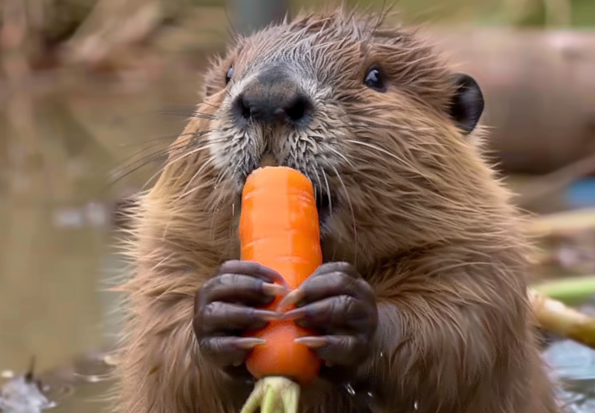 Аппетитно грызущий морковку бобренок Устюжок попал на видео