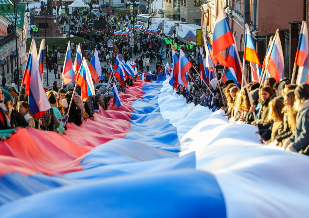 Нижний Новгород. Развертывание 100-метрового флага Российской Федерации во время праздничных мероприятий в День народного единства