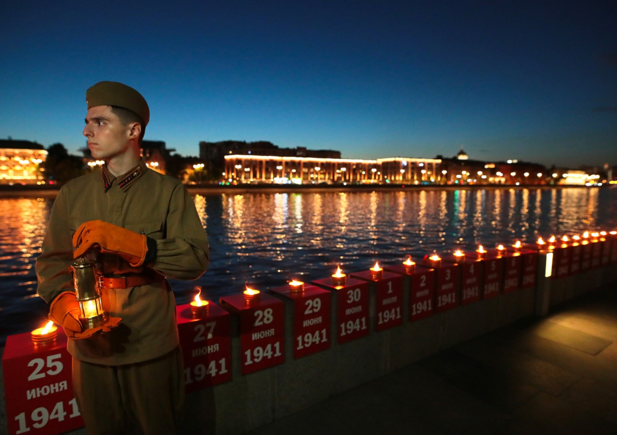 Также в ночь с 21 на 22 июня у Музея Победы на Поклонной горе в Москве прошла всероссийская мемориальная акция «Свеча памяти». Ветераны ВОВ, почетные гости и волонтеры зажгли на площади Победителей свечи, чтобы почтить память погибших в войне. В полночь на фасаде главного здания Музея Победы появилась инсталляция из 1418 виртуальных свечей, символизирующих количество дней, в течение которых длилась война.