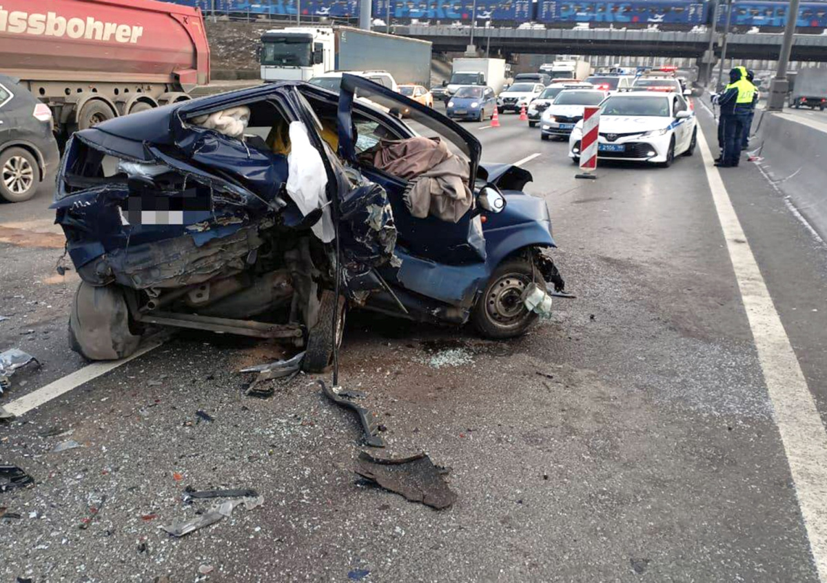 До этого один человек погиб в результате аварии с участием двух машин и фургона на МКАД. Грузовик на полной скорости протаранил остановившийся на третьей полосе легковой автомобиль, рядом с багажником которого стояли три человека. На кадрах видно, что один из мужчин успел оттащить другого. Третий же попал под колеса, спустя час он скончался от полученных травм.