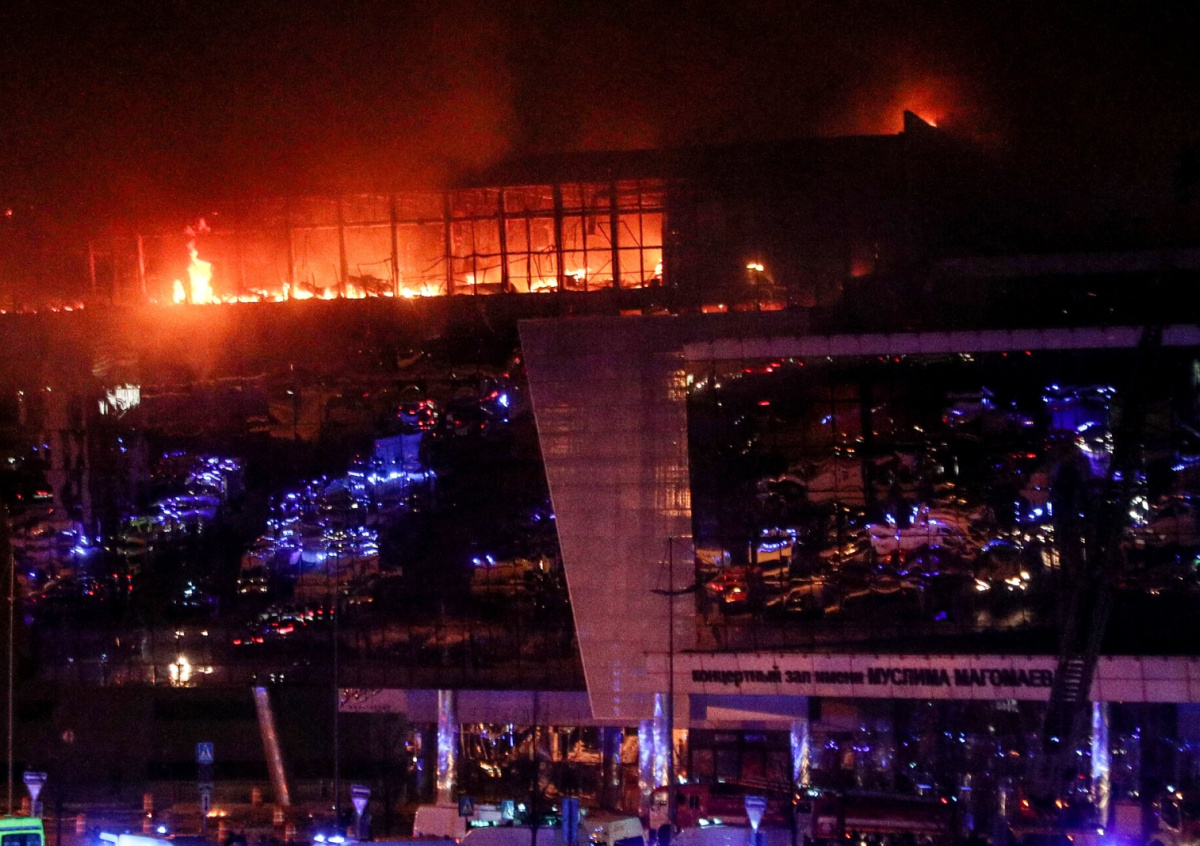 Вечером 22 марта группа вооруженных автоматами мужчин в камуфляже ворвалась в фойе концертного зала «Крокус Сити Холл» в подмосковном Красногорске и открыла огонь по людям. После террористы устроили поджог и скрылись на белом автомобиле Renault. Четверых подозреваемых в совершении теракта задержали в Брянской области, недалеко от границы с Украиной.