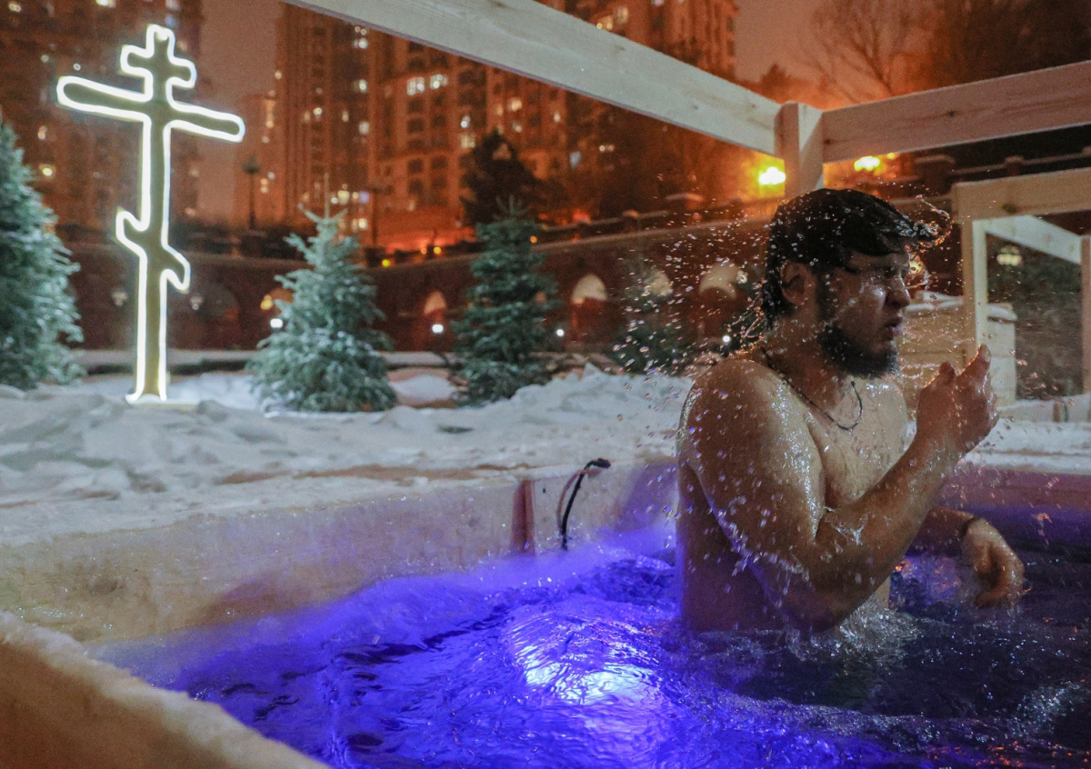 Из года в год сотни тысяч верующих следуют традиции окунаться в ледяную воду. Погода в столице, в отличие от многих других регионов страны, была достаточно комфортной — около −5 градусов. Вместе с тем власти столицы в ночь на 19 января продлили работу некоторых маршрутов наземного транспорта. Отмечалось, что это делается для удобства пассажиров, которые возвращаются домой после крещенский купаний.