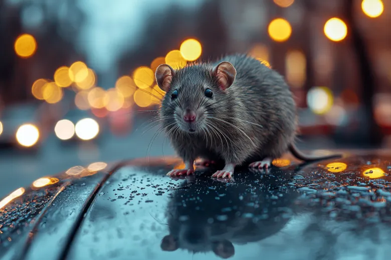 Крыса прокатилась на капоте машины и попала на видео