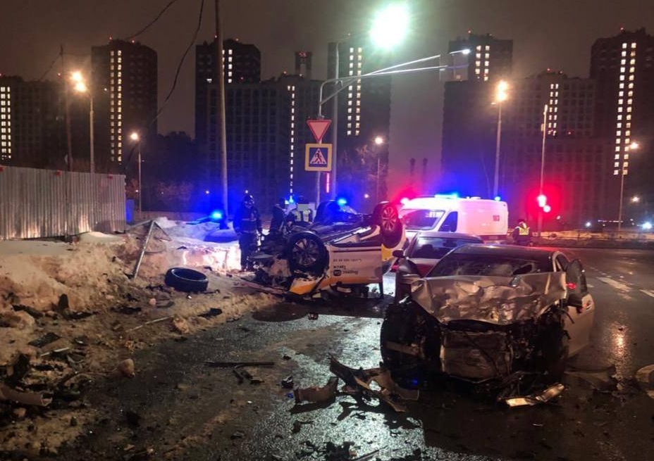 Ночью в Батайском проезде водитель автомобиля «Мерседес» совершил столкновение с автомобилями такси, который от удара перевернулся, и «Мазда». В результате дорожной аварии водитель автомобиля такси госпитализирован, а его 25-летняя пассажирка скончалась на месте, — уточнили в прокуратуре.