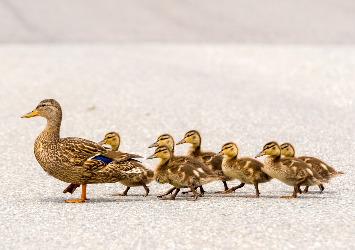 В Москве мотоциклисты остановили поток машин, чтобы спасти утку и четырех утят, сообщает Telegram-канал Mash. Инцидент произошел на МКАД. Пернатые спасаться не хотели и пытались убежать под колеса машин.