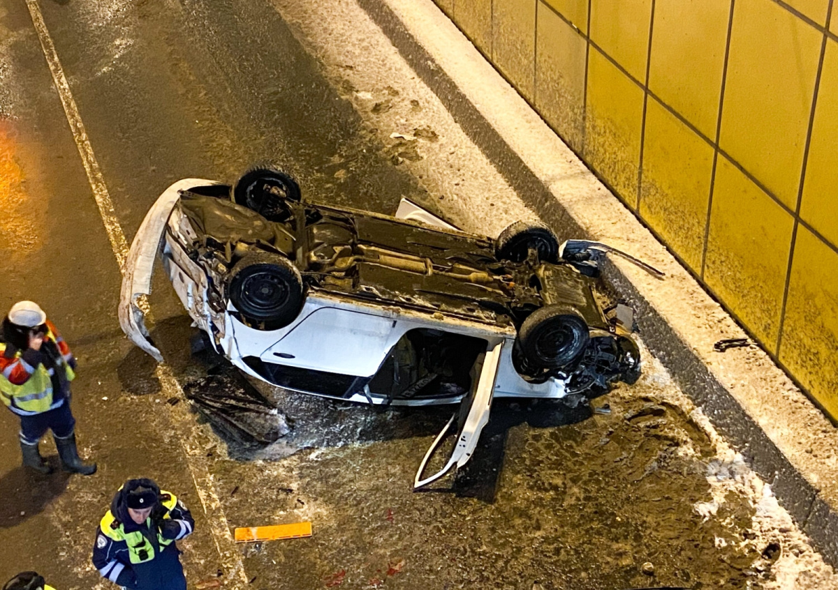 В итоге легковушка перевернулась во время падения и приземлилась крышей на асфальт. Примечательно, что водитель отделался лишь ушибами.