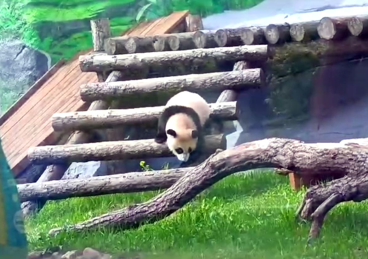 Панда Катюша впервые в жизни ступила на травку и попала на видео