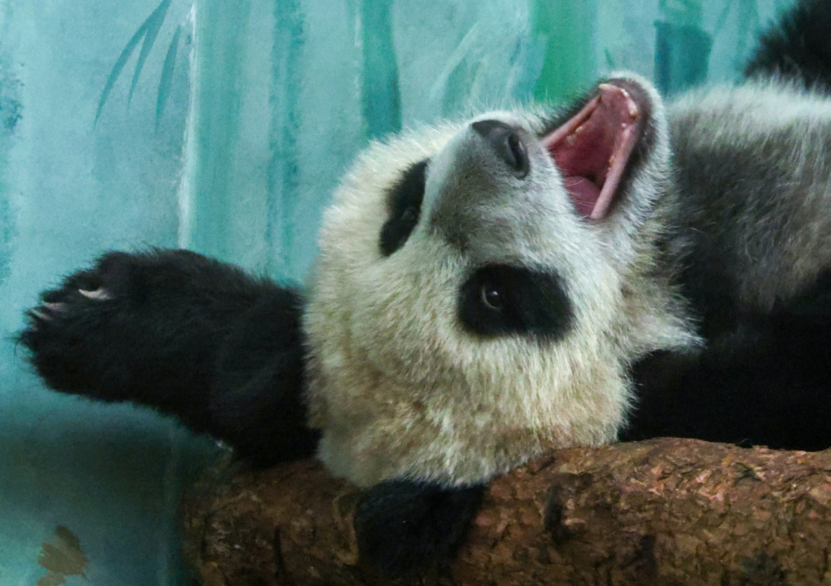 Глава Московского зоопарка показала видео, как панда Катюша забралась на лазилку