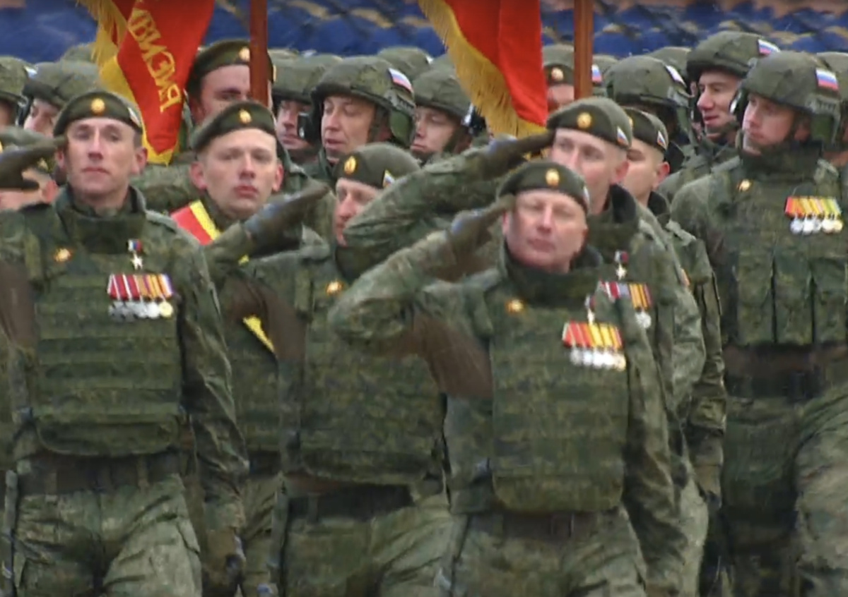 Парадный расчет участников специальной военной операции прошел по Красной площади в Москве, сообщило Министерство обороны. Во главе строя встал Герой России, подполковник Евгений Хабаров. Бойцы пронесли знамена подразделений, освобождавших Новороссию в годы Великой Отечественной войны.