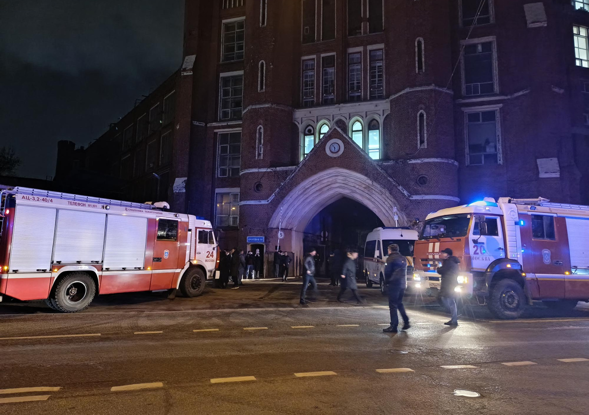 Пожар произошел в одном из корпусов бывшего предприятия. Там располагаются фитнес-клуб, танцевальная студия и скейт-парк. В МЧС по Москве подтвердили, что из-за пожара в здании оказались заблокированы люди. Для эвакуации людей с верхних этажей были установлены подъемные механизмы. Причиной пожара могла стать неисправность проводки или ее перегруз.